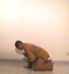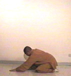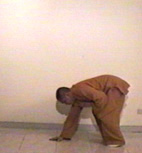 蹲下去,並把右掌貼於地面